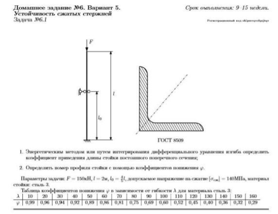ДЗ 6: Устойчивость сжатых стержней вариант 5