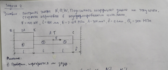 Полный типовой расчет по сопротивлению материалов №1 "Растяжение — сжатие, Кручение", 3 задачи, зачтено