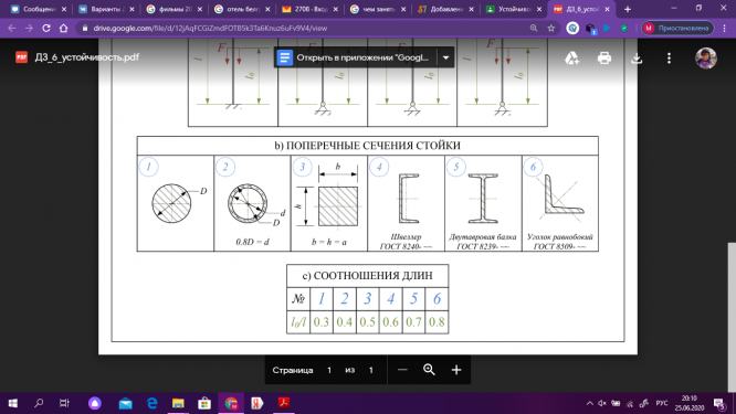 ДЗ 6: Устойчивость сжатых стержней вариант 246