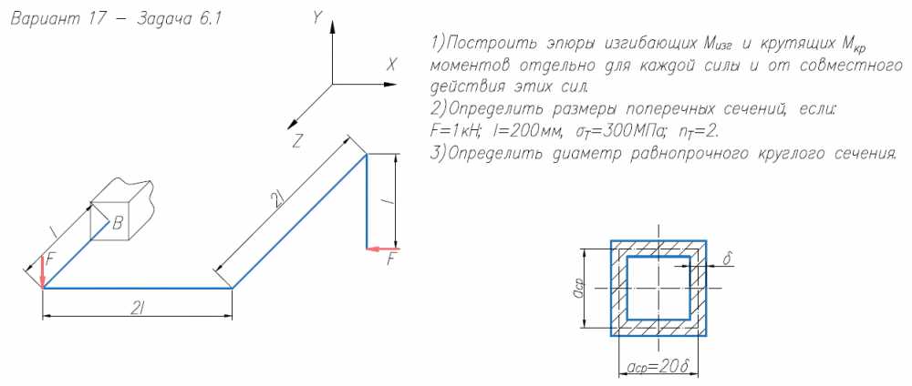 ДЗ 6A: Расчет на прочность. Общий случай напряженного состояния вариант 17