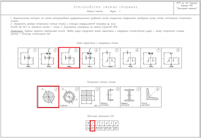 ДЗ 6: Устойчивость сжатых стержней вариант 311