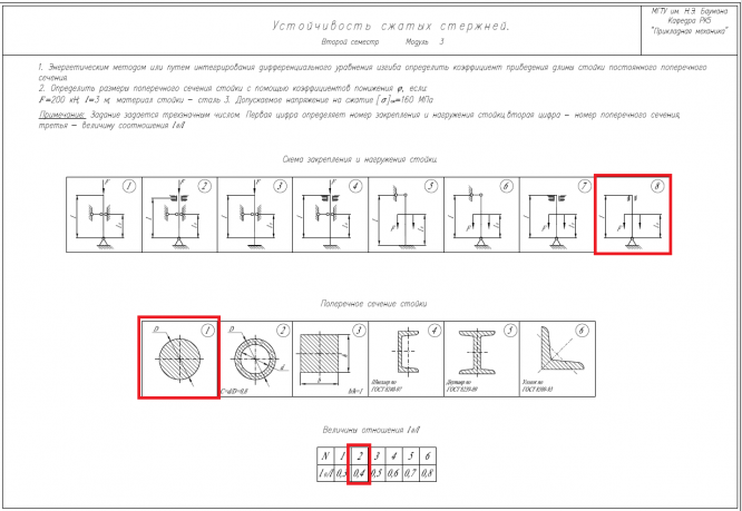 ДЗ 6: Устойчивость сжатых стержней вариант 812
