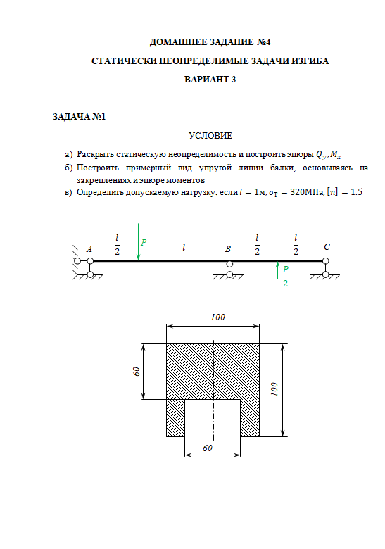 ДЗ 4: Статически неопределимые задачи изгиба вариант 3