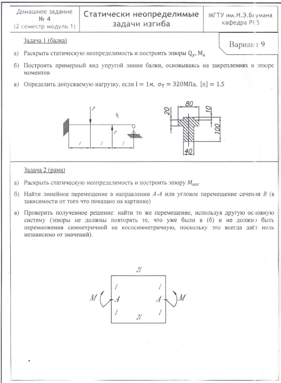 ДЗ 4: Статически неопределимые задачи изгиба вариант 9