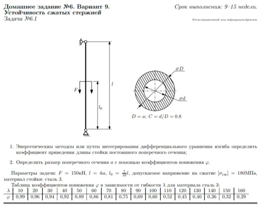 ДЗ 6: Устойчивость сжатых стержней вариант 9