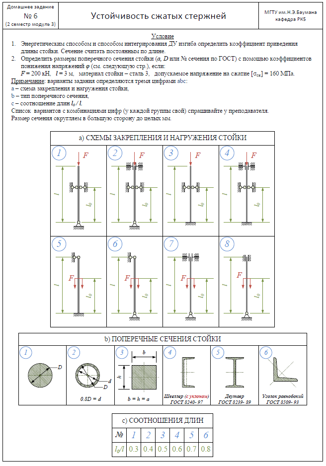 ДЗ 7: Устойчивость сжатых стержней вариант 544