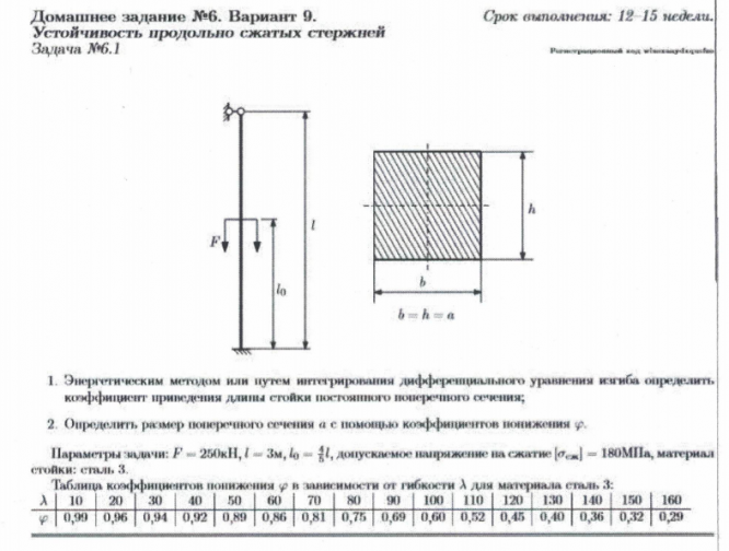 ДЗ 6: Устойчивость сжатых стержней вариант 9