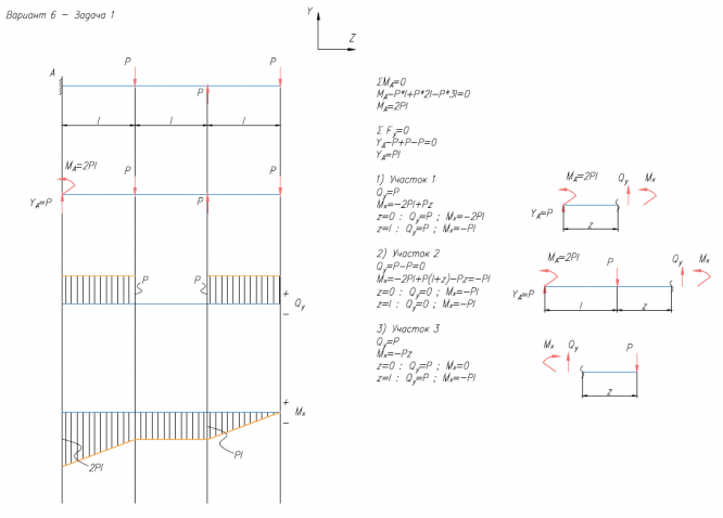 ДЗ 1: Построение эпюр внутренних силовых факторов вариант 6