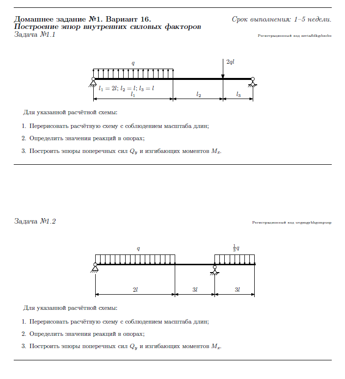 ДЗ 1: Построение эпюр внутренних силовых факторов вариант 16