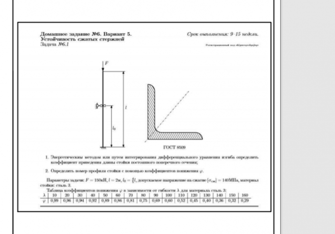 ДЗ 6: Устойчивость сжатых стержней вариант 5