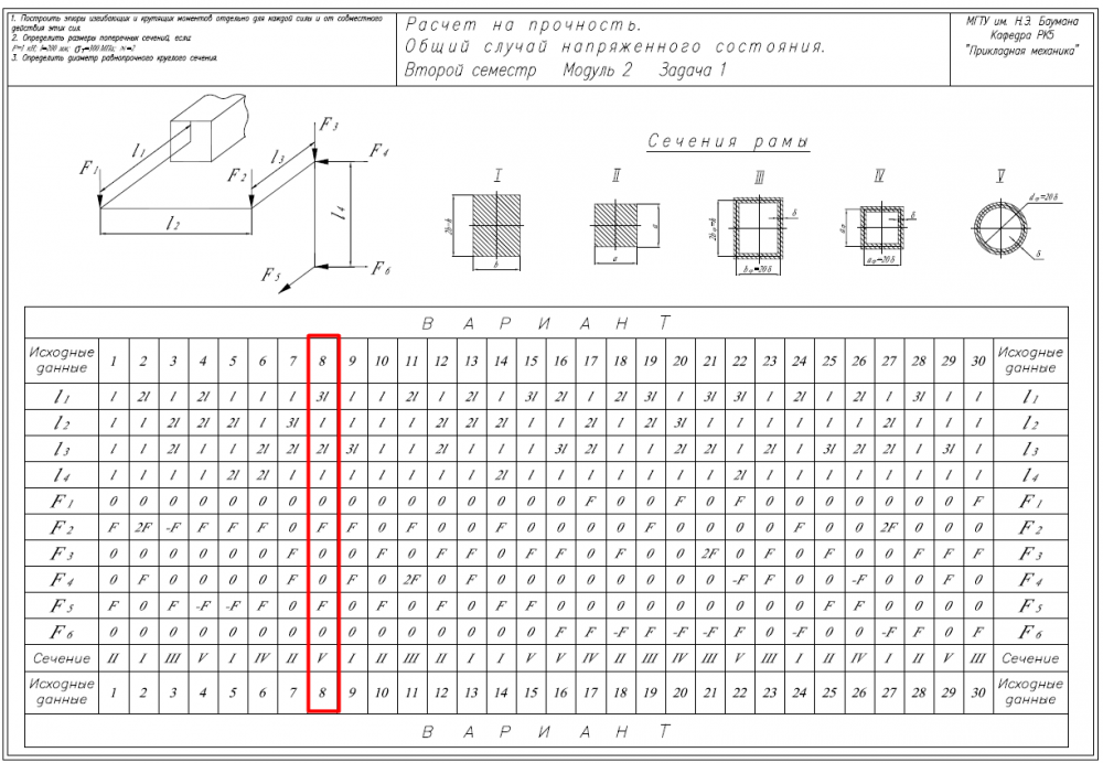 ДЗ 5: Расчет на прочность. Общий случай напряженного состояния вариант 8