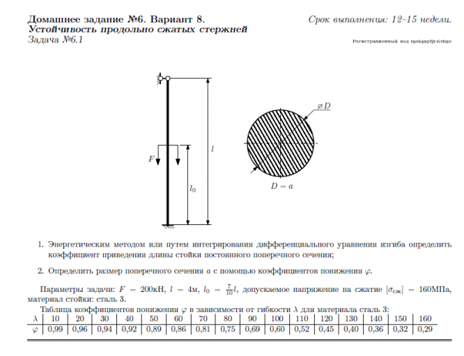 ДЗ 6: Устойчивость сжатых стержней вариант 8