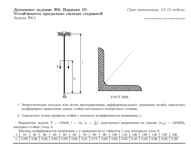ДЗ 6: Устойчивость сжатых стержней вариант 10