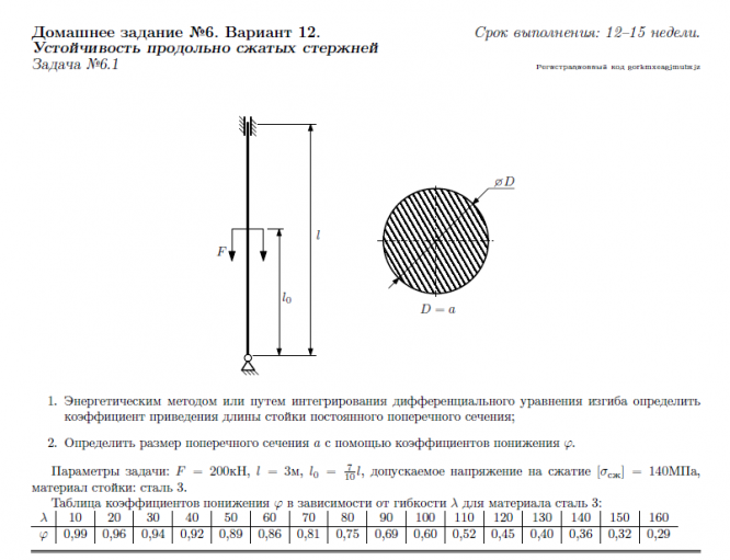 ДЗ 6: Устойчивость сжатых стержней вариант 12