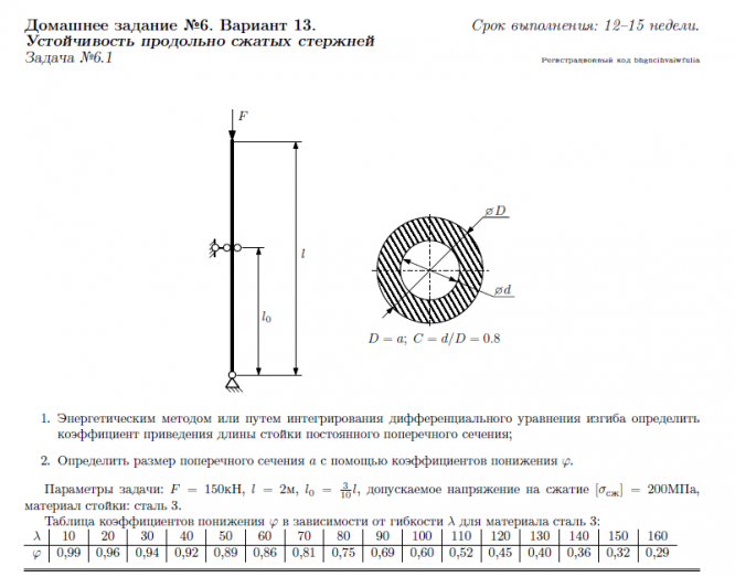 ДЗ 6: Устойчивость сжатых стержней вариант 13