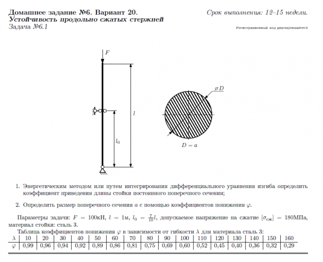ДЗ 6: Устойчивость сжатых стержней вариант 20