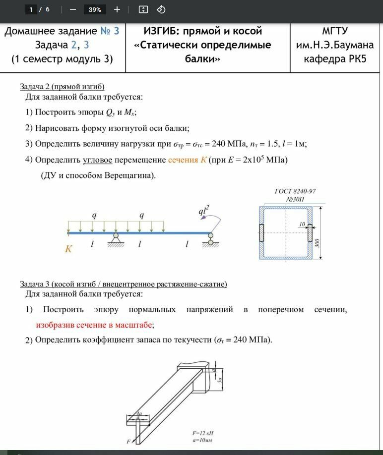 Вариант 7 - ДЗ №4 - Статически определимые балки - Задача 1 + Задача 2 + Изгиб