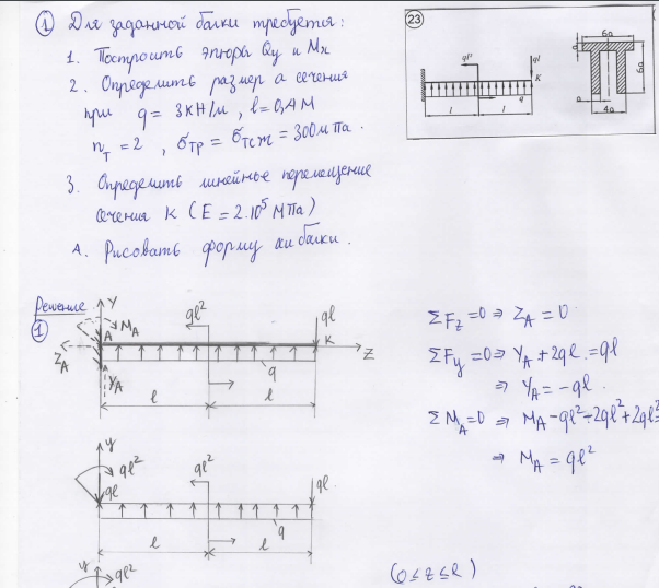 2022г Вариант 23 - ДЗ № 3 - Статически определимые балки - Задача 1 + Задача 2