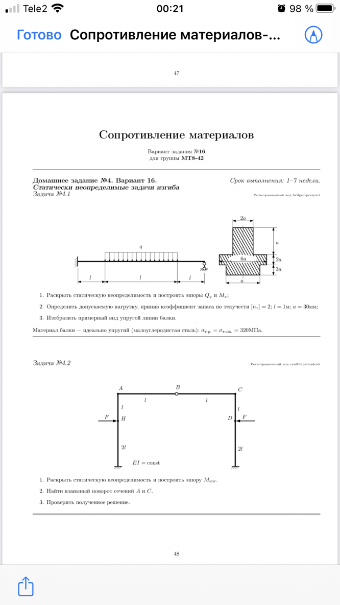 ДЗ 4: Статически неопределимые задачи изгиба вариант 16