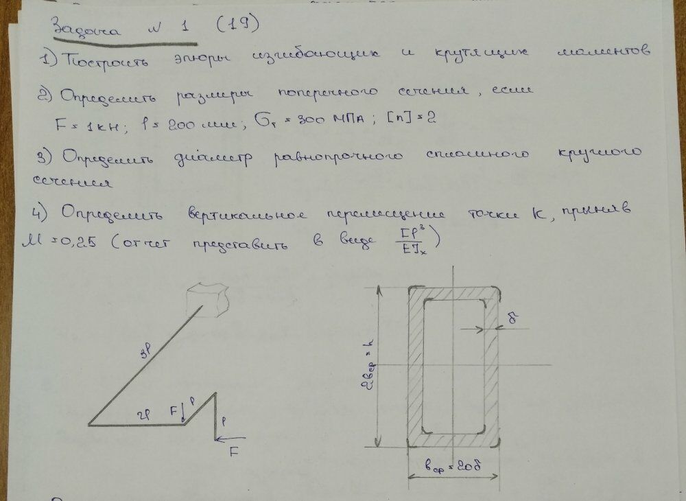 Главная » Учебные материалы » Сопротивление материалов » Домашние задания » МГТУ им. Н.Э.Баумана » 4 семестр » Номер 5 » Вариант 19 » Расчет на прочность. Общий случай напряженного состояния