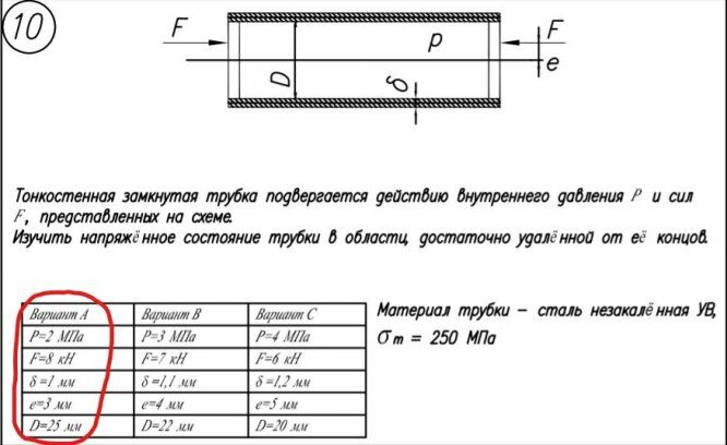 ДЗ 5: Расчет на прочность. Общий случай напряженного состояния вариант 10