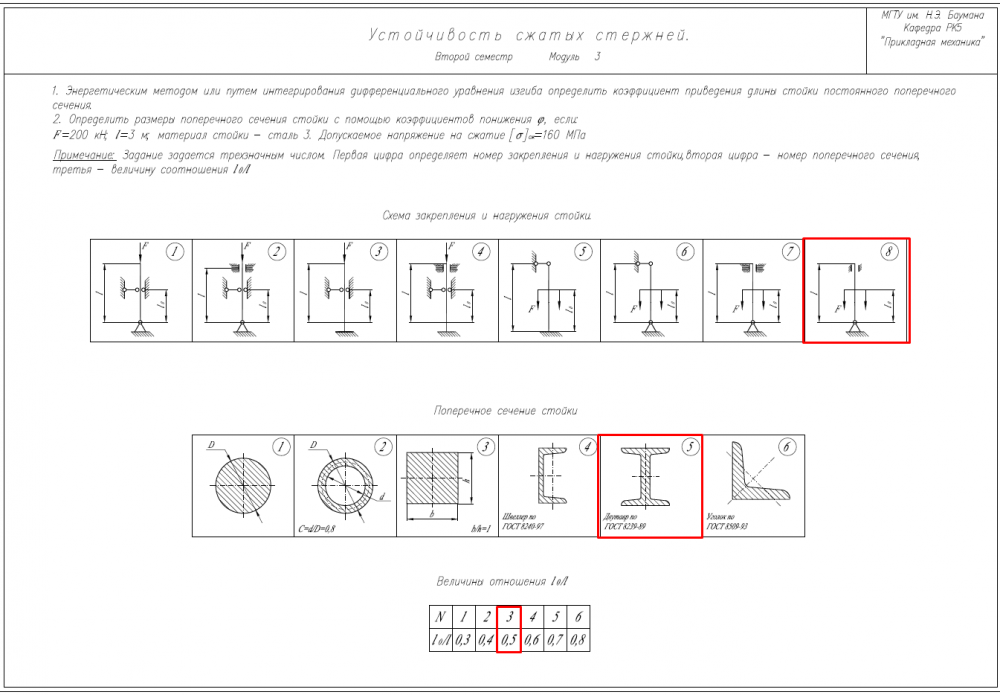 ДЗ 7: Устойчивость сжатых стержней вариант 853