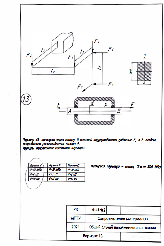 ДЗ 5: Расчет на прочность. Общий случай напряженного состояния вариант 13
