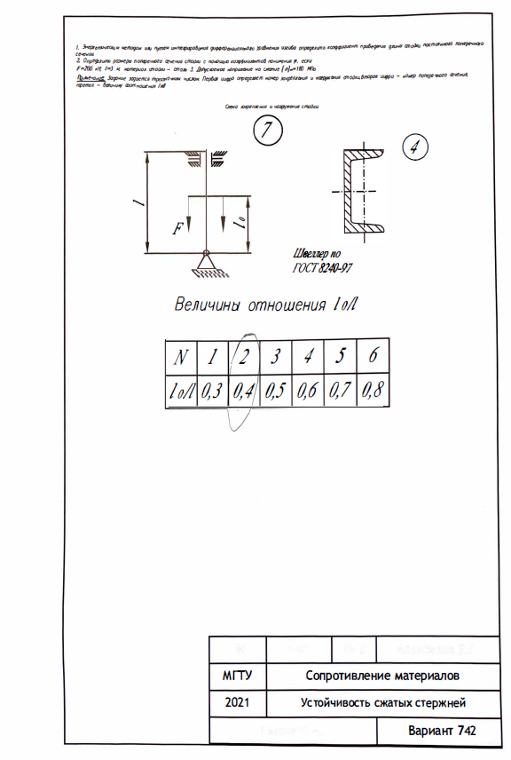 ДЗ 6: Устойчивость сжатых стержней вариант 742
