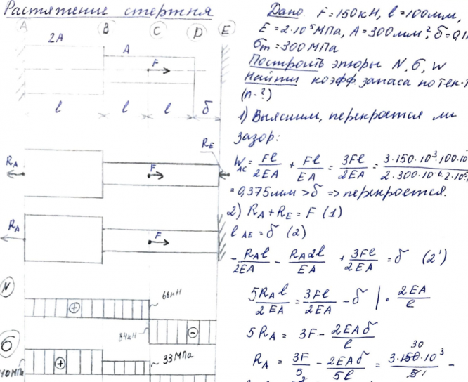 Типовой расчет по сопротивлению материалов №2 "Растяжение-сжатие", задача № 2.1, зачтено