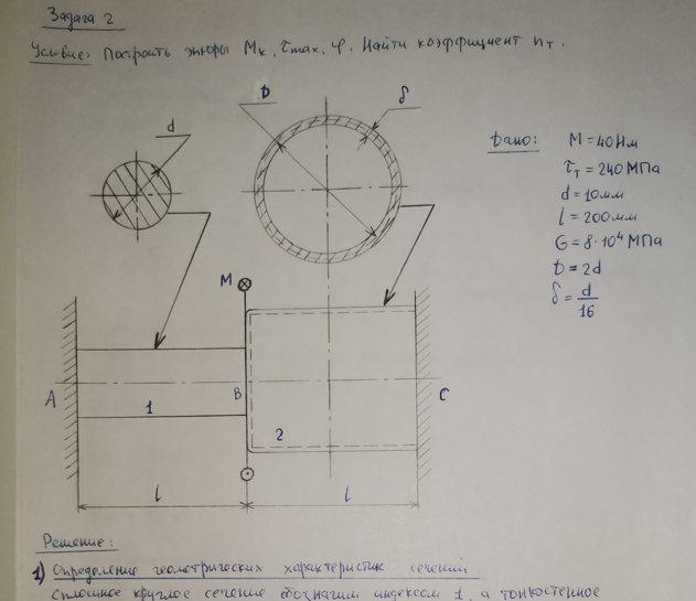 Типовой расчет по сопротивлению материалов МГТУ 3 семестр домашнее задание кручение сжатие растяжение.