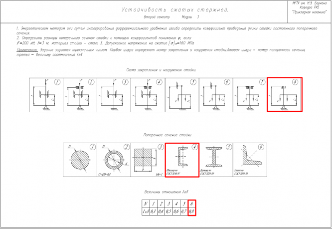 ДЗ 6: Устойчивость сжатых стержней вариант 846
