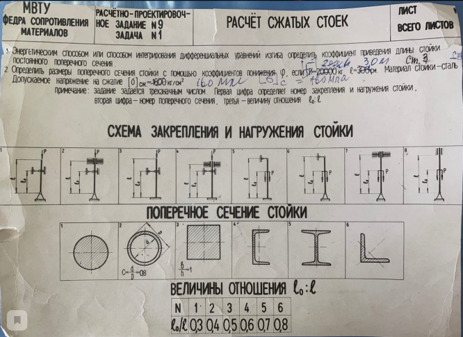 ДЗ 6: Устойчивость сжатых стержней вариант 161