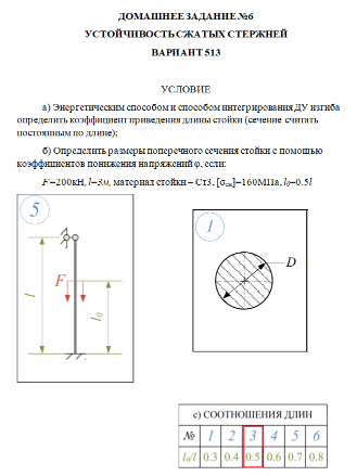 ДЗ 6: Устойчивость сжатых стержней вариант 513