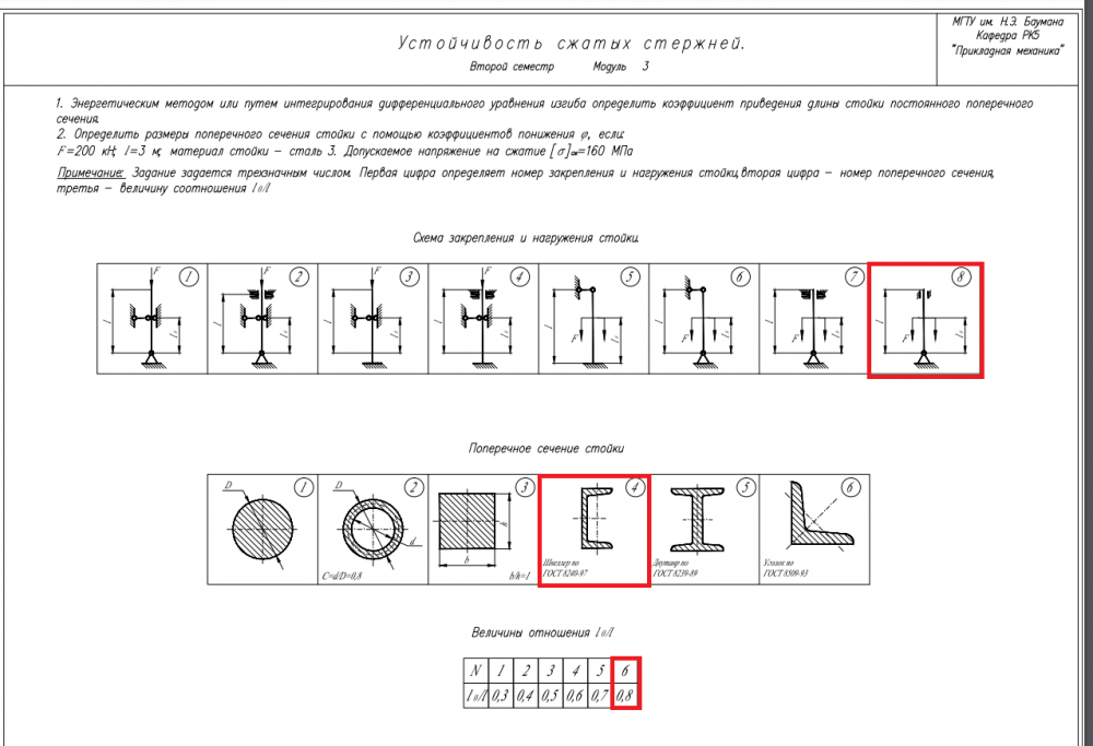 ДЗ 6: Устойчивость сжатых стержней вариант 846