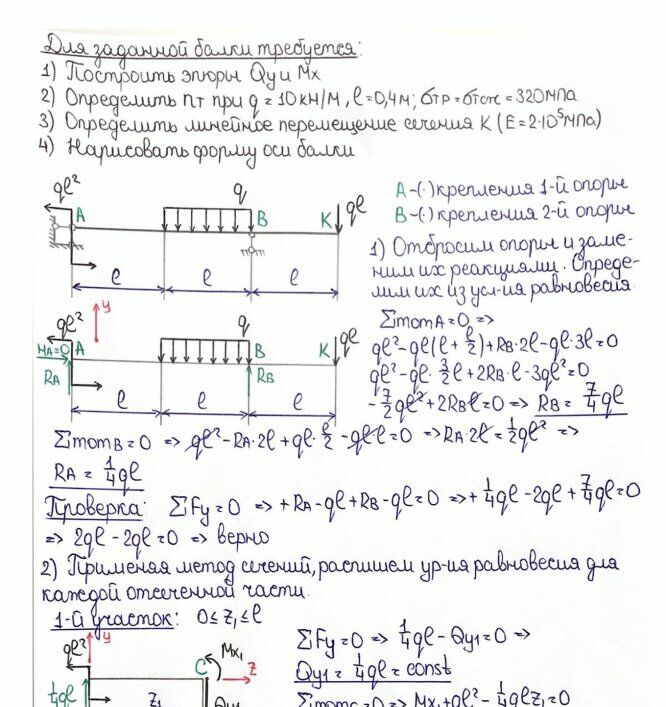 Вариант 20 - ДЗ №3 - Статически определимые балки - Задача 2.pdf