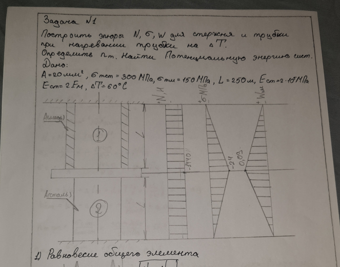 Полный типовой расчет по сопротивлению материалов №1 "Растяжение — сжатие, Кручение", 3 задачи, зачтено