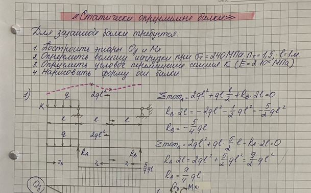 Полный типовой расчет по сопротивлению материалов №3 "Статически определимые балки", 2 задачи, зачтено