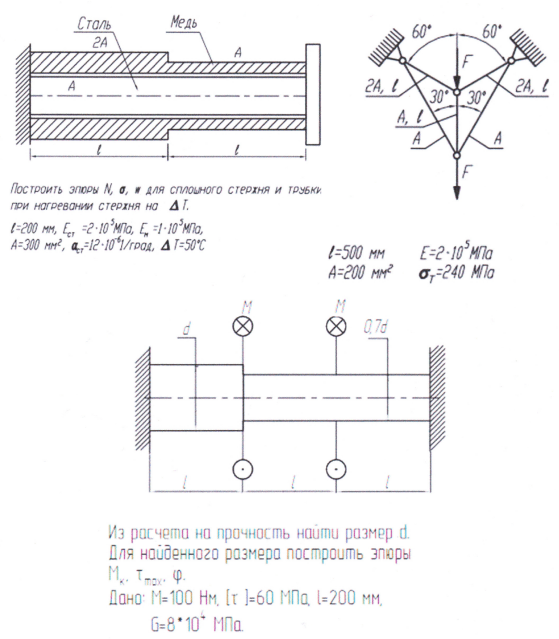 Типовой расчет по сопротивлению материалов МГТУ 3 семестр домашнее задание кручение сжатие растяжение.