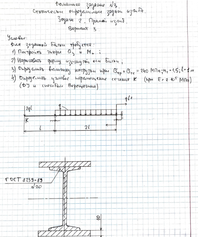 Вариант 3 - ДЗ №3 - "Статически определимые балки"
