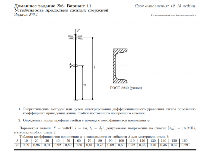 ДЗ 6: Устойчивость сжатых стержней вариант 11
