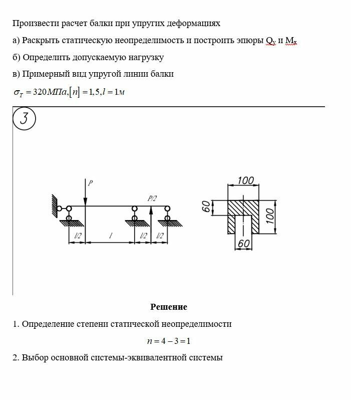 Произвести расчет балки при упругих деформациях