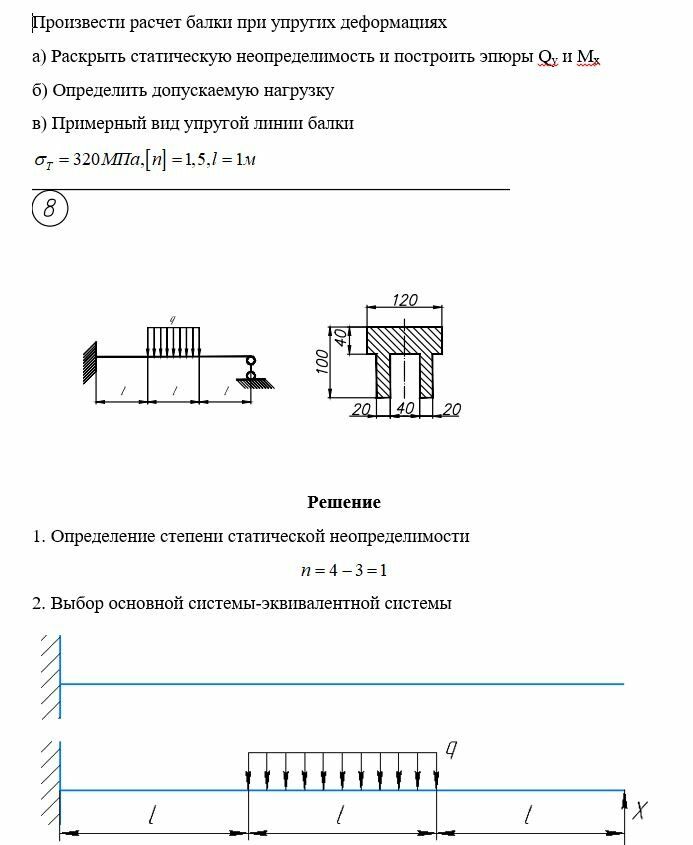 ДЗ 4: Статически неопределимые задачи изгиба вариант 8