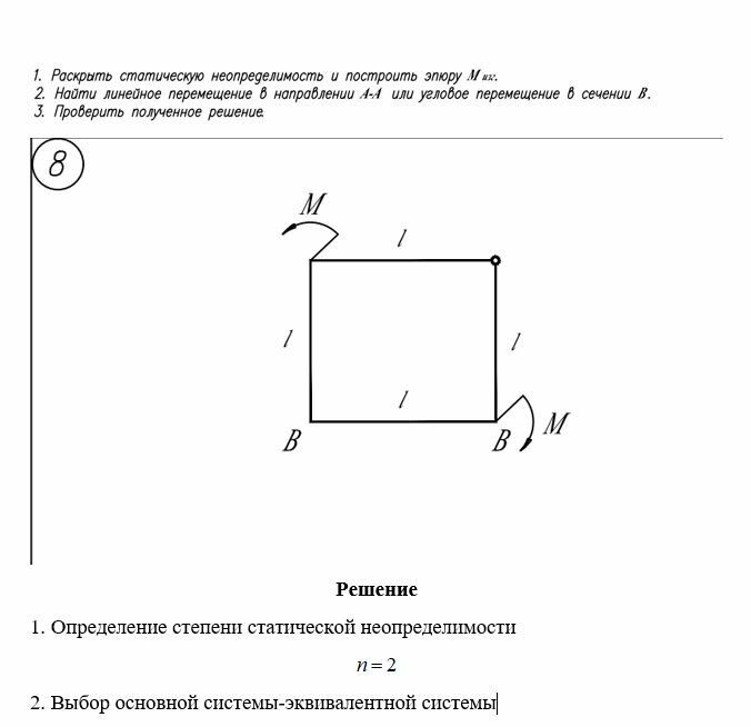 Вариант 8 - ДЗ №1 - Статически неопределимые задачи изгиба + Задача 1+2
