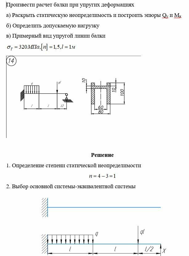 ДЗ 4: Статически неопределимые задачи изгиба вариант 14