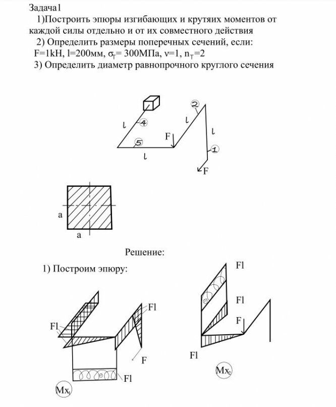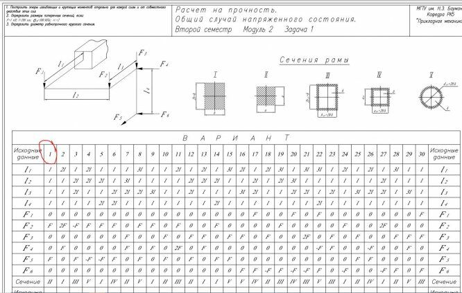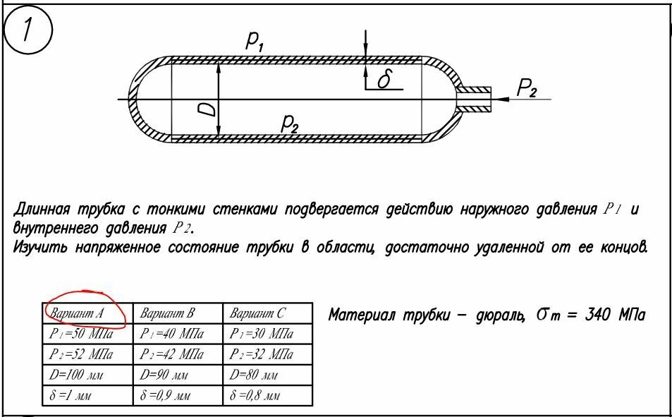 2022г Вариант 1 - ДЗ №2 - Расчет на прочность. Общий случай напряженного состояния - Задача 1+2
