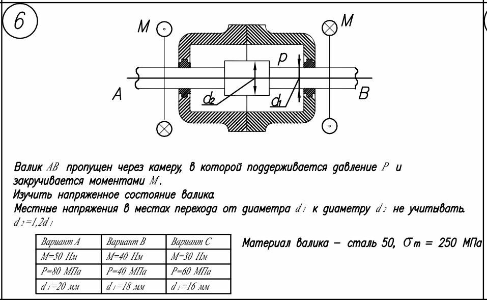Главная » Учебные материалы » Сопротивление материалов » Домашние задания » МГТУ им. Н.Э.Баумана » 4 семестр » Номер 5 » Вариант 6 » Расчет на прочность. Общий случай напряженного состояния