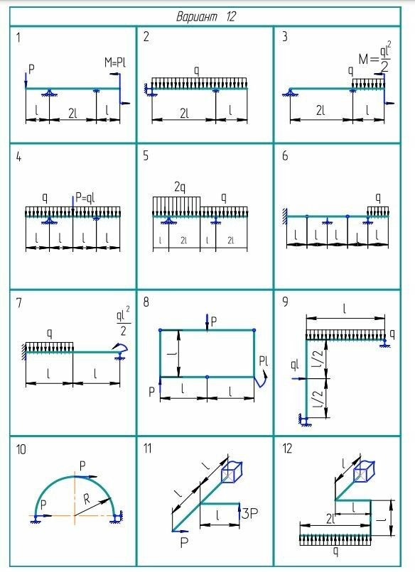 Вариант 12 - ДЗ №1 - Построение эпюр внутренних силовых факторов - 12 Задач
