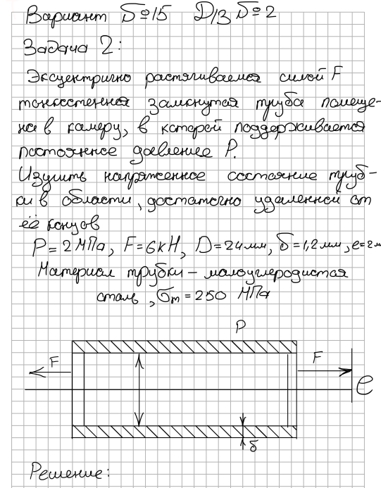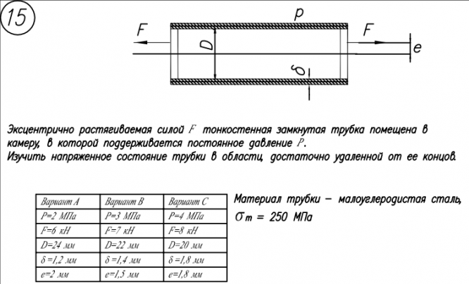 Главная » Учебные материалы » Сопротивление материалов » Домашние задания » МГТУ им. Н.Э.Баумана » 4 семестр » Номер 5 » Вариант 15 » Расчет на прочность. Общий случай напряженного состояния