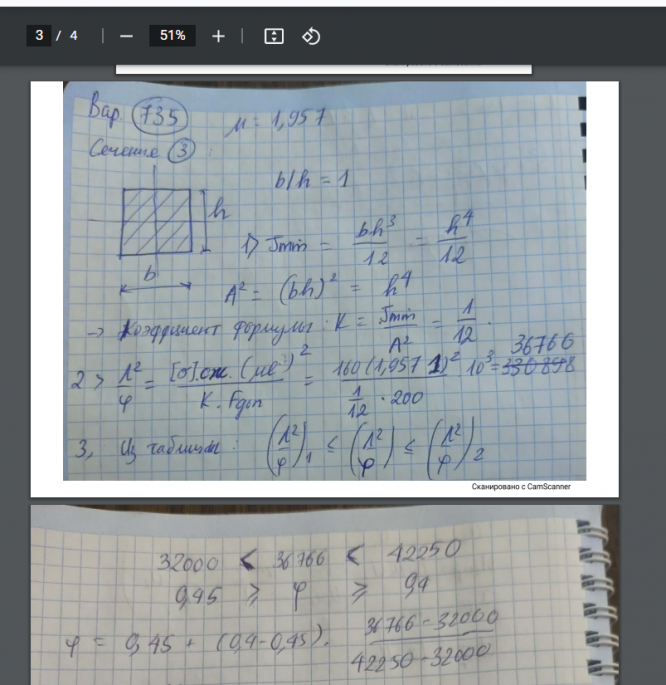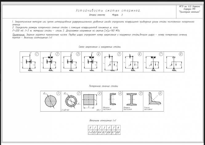 ДЗ 6: Устойчивость сжатых стержней вариант 735