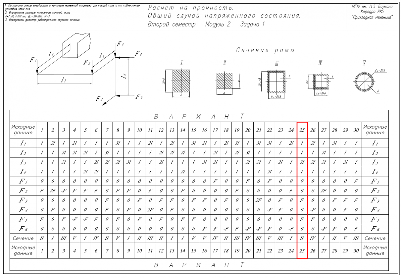 ДЗ 6B: Расчет на прочность. Общий случай напряженного состояния вариант 25